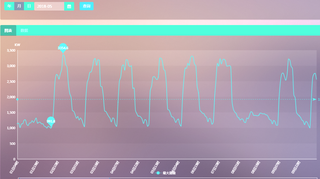 根據(jù)對(duì)該企業(yè)監(jiān)測(cè)負(fù)荷曲線一段時(shí)間后,發(fā)現(xiàn)該企業(yè)每月固定的一兩次尖峰值是由大功率設(shè)備開(kāi)啟造成,因此,對(duì)該企業(yè)大功率設(shè)備的開(kāi)啟時(shí)間進(jìn)行調(diào)整,尖峰負(fù)荷下降400KW,對(duì)最大需量值進(jìn)行調(diào)整,每月節(jié)省基本電費(fèi)12800元。
